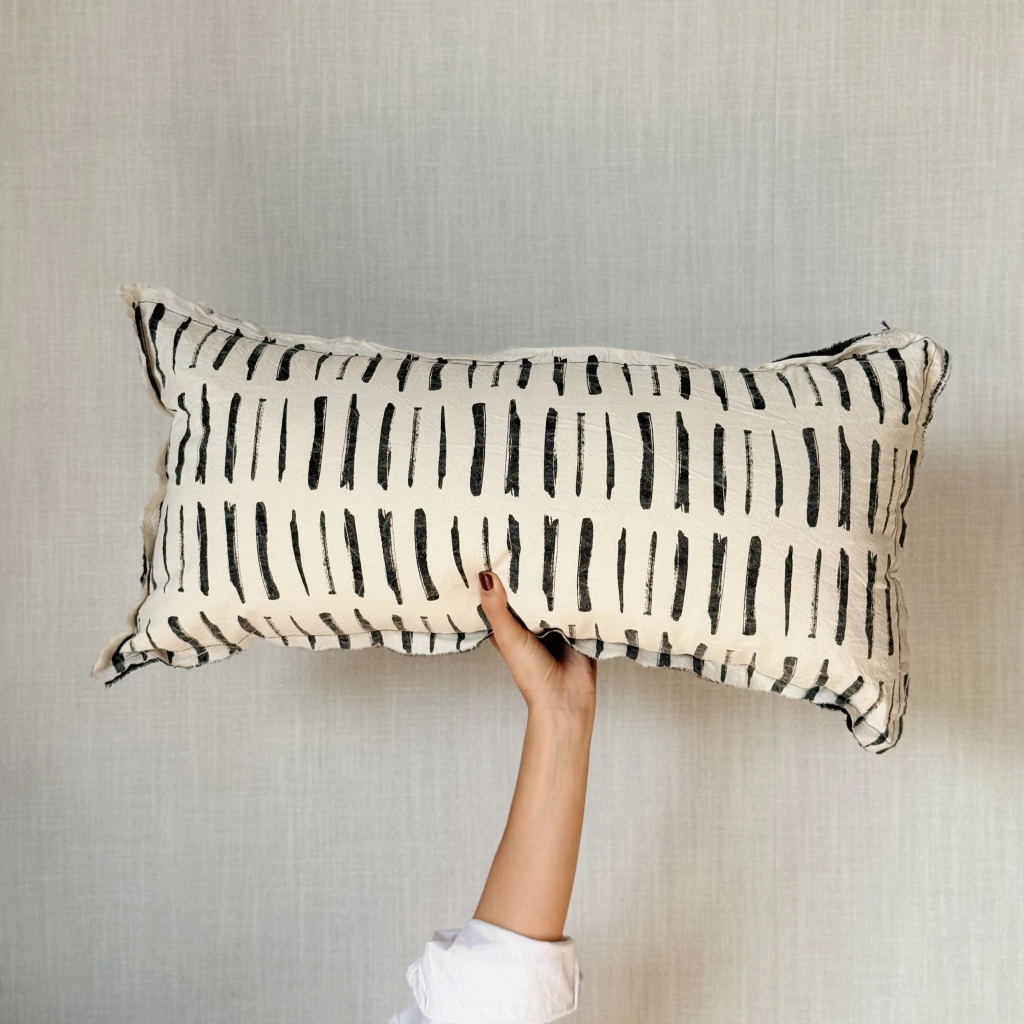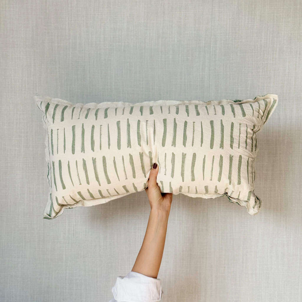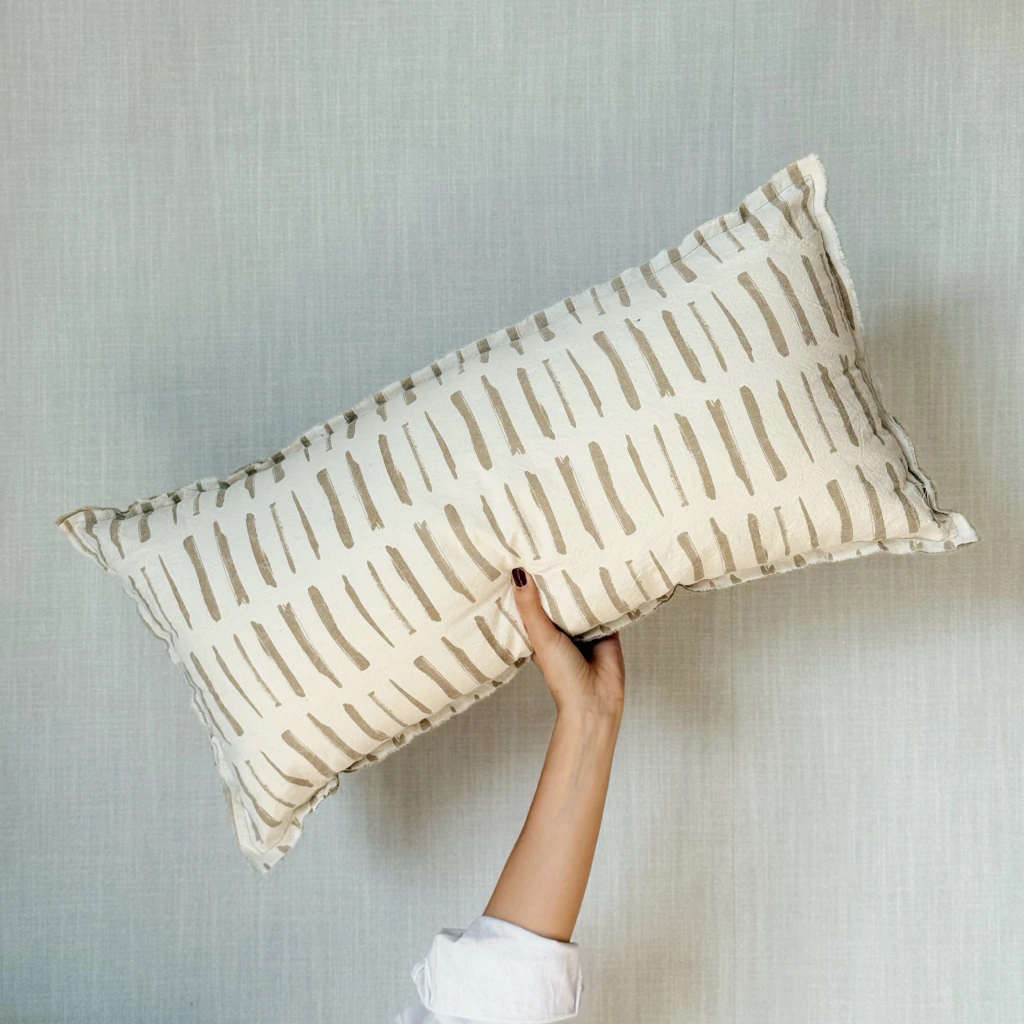 Almohadón de género con trama, con cierre y relleno de vellón siliconado independiente.