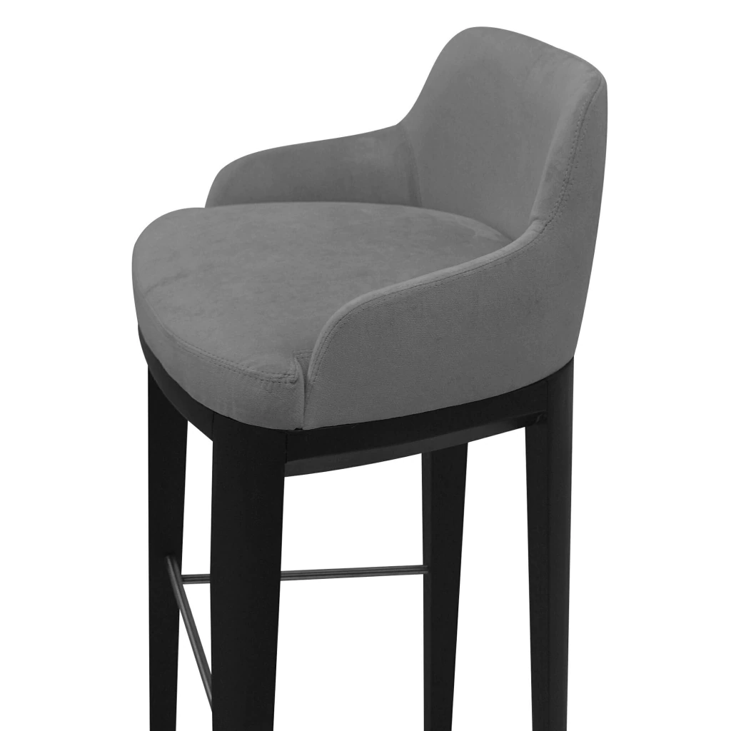 Elegante banqueta de diseño tapizada con patas de madera maciza de paraíso con terminación en laca poliuretánica y apoyapies de aluminio. Podés elegir dentro de 6 alternativas de lustre.