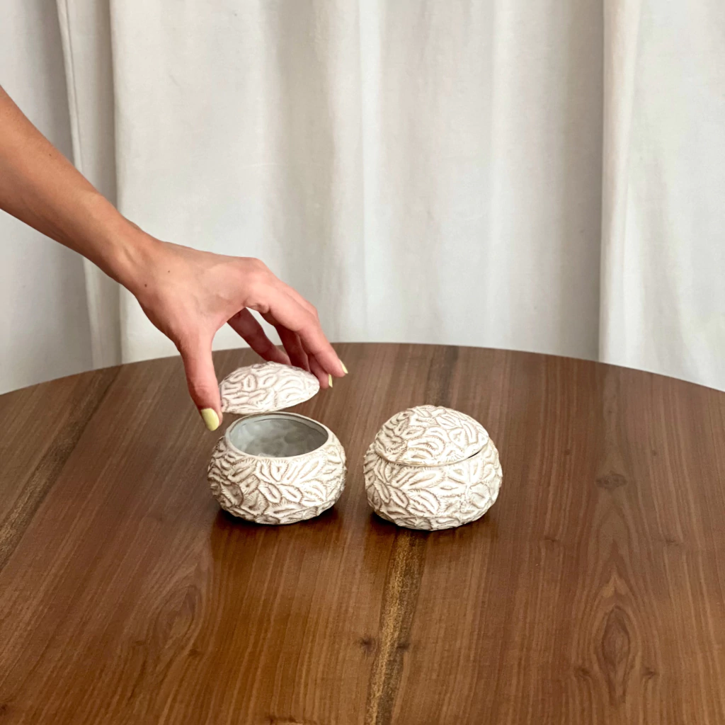 Caja de cerámica con tapa labrada
