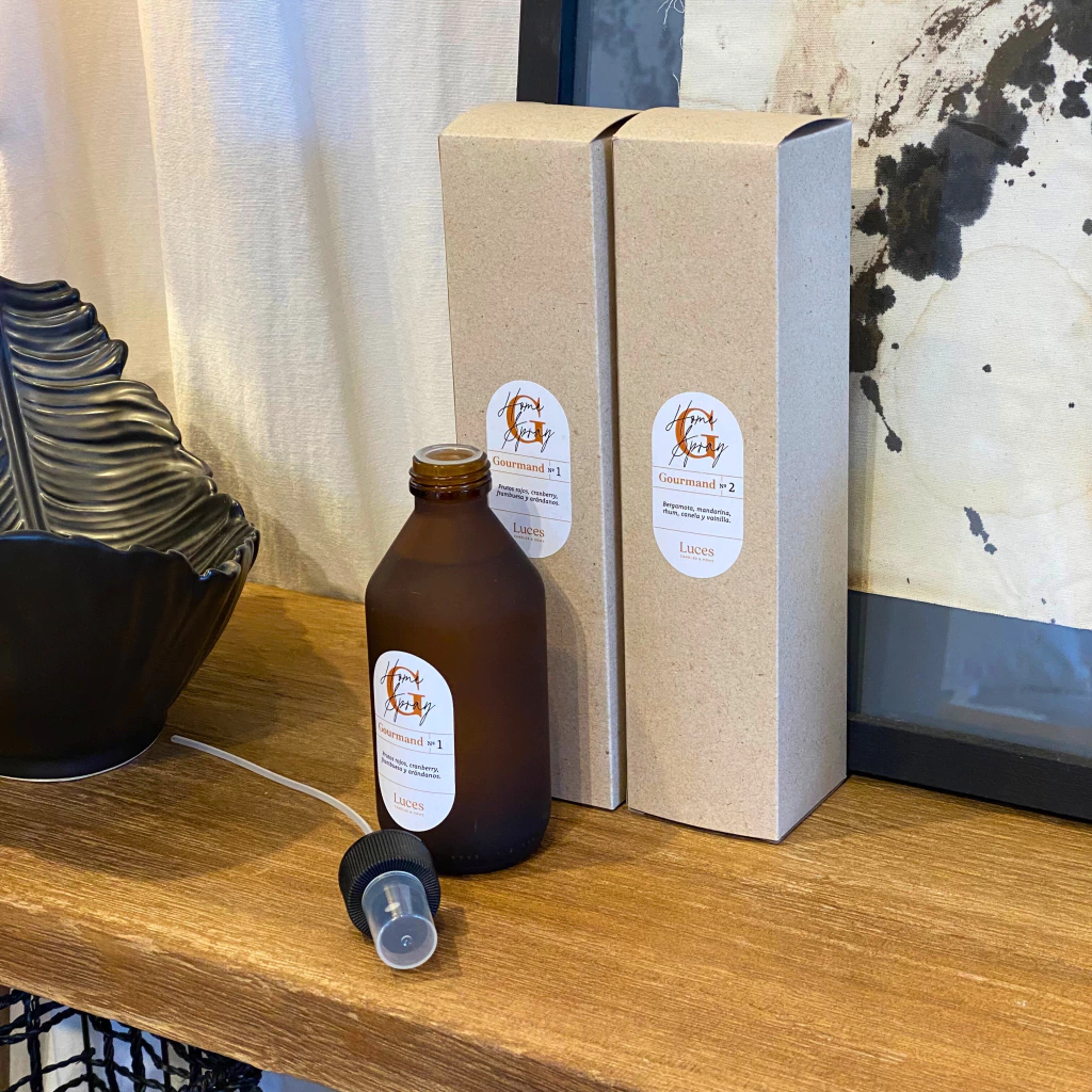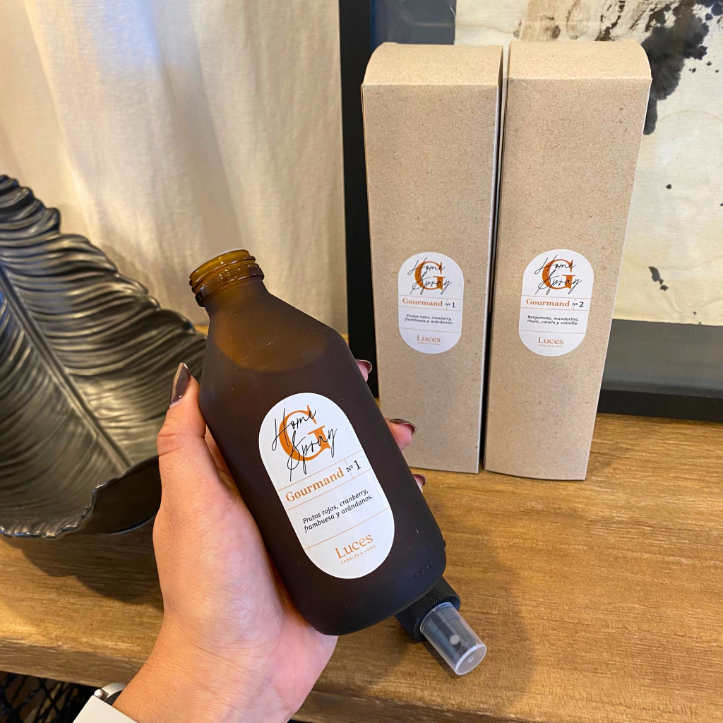Home Spray Gourmand, en envase de vidrio, de 250ml de capacidad.
