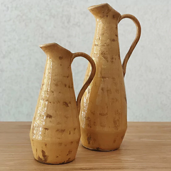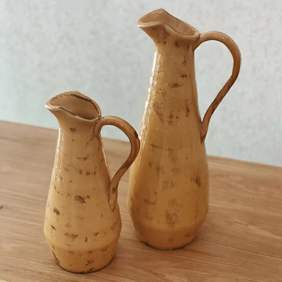 Jarra de cerámica color ocre vintage.