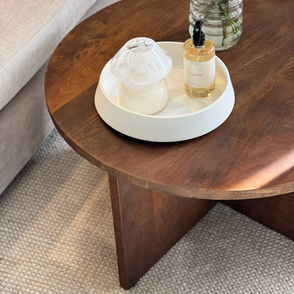 Es ideal para sumarla al centro del living, combinando distintos tamaños. La calidez de su acabado natural y las vetas únicas de la madera aportan caracter al espacio.