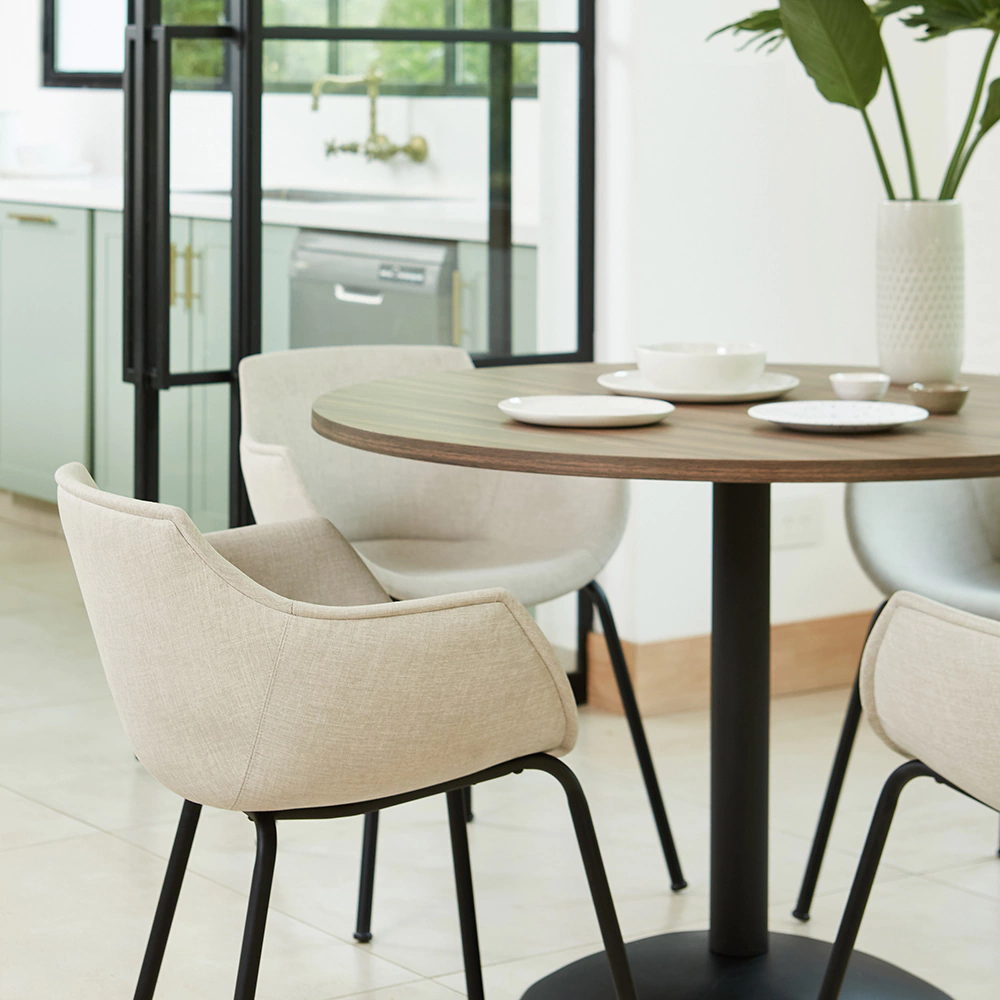Las patas son de caño pintadas con epoxi terminación microtexturado y las podés pedir en blanco, negro, gris o cromado.