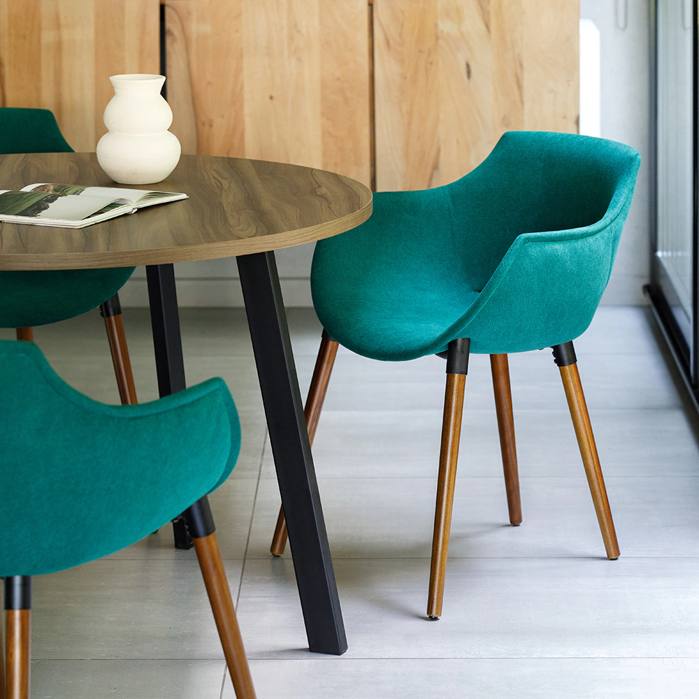 Amplia y cómoda silla Frida con casco integramente tapizado.
