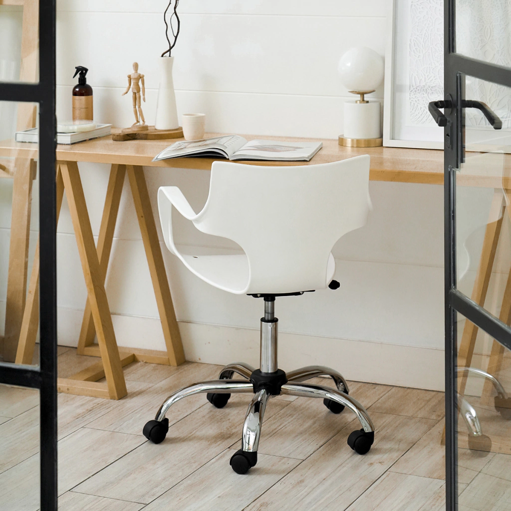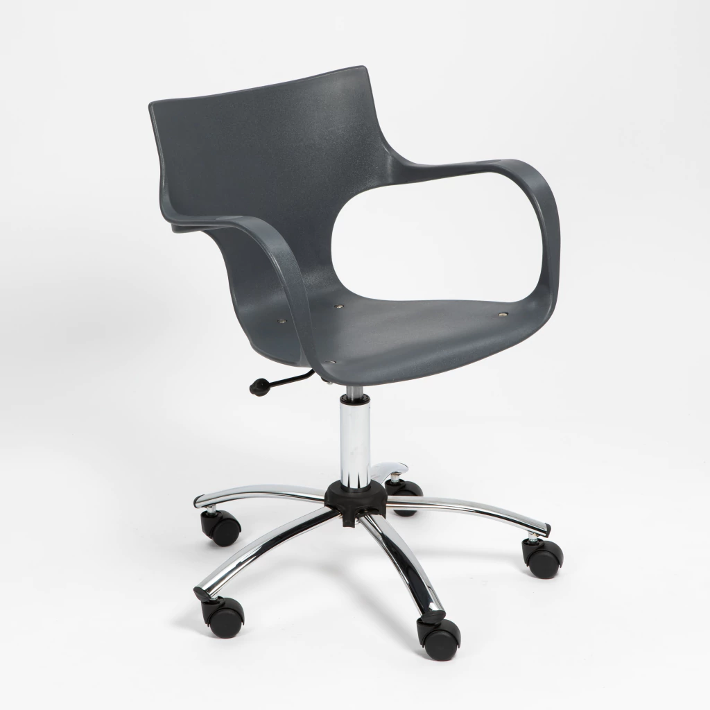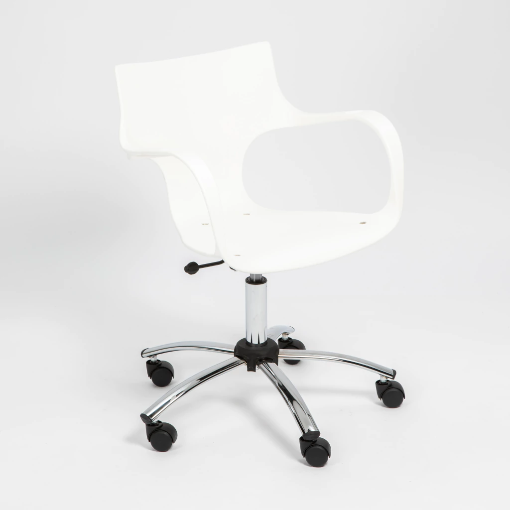 Silla nuemática, regulable en altura, con asiento realizado en un monocasco de polipropileno de alto impacto, disponible en varios colores.