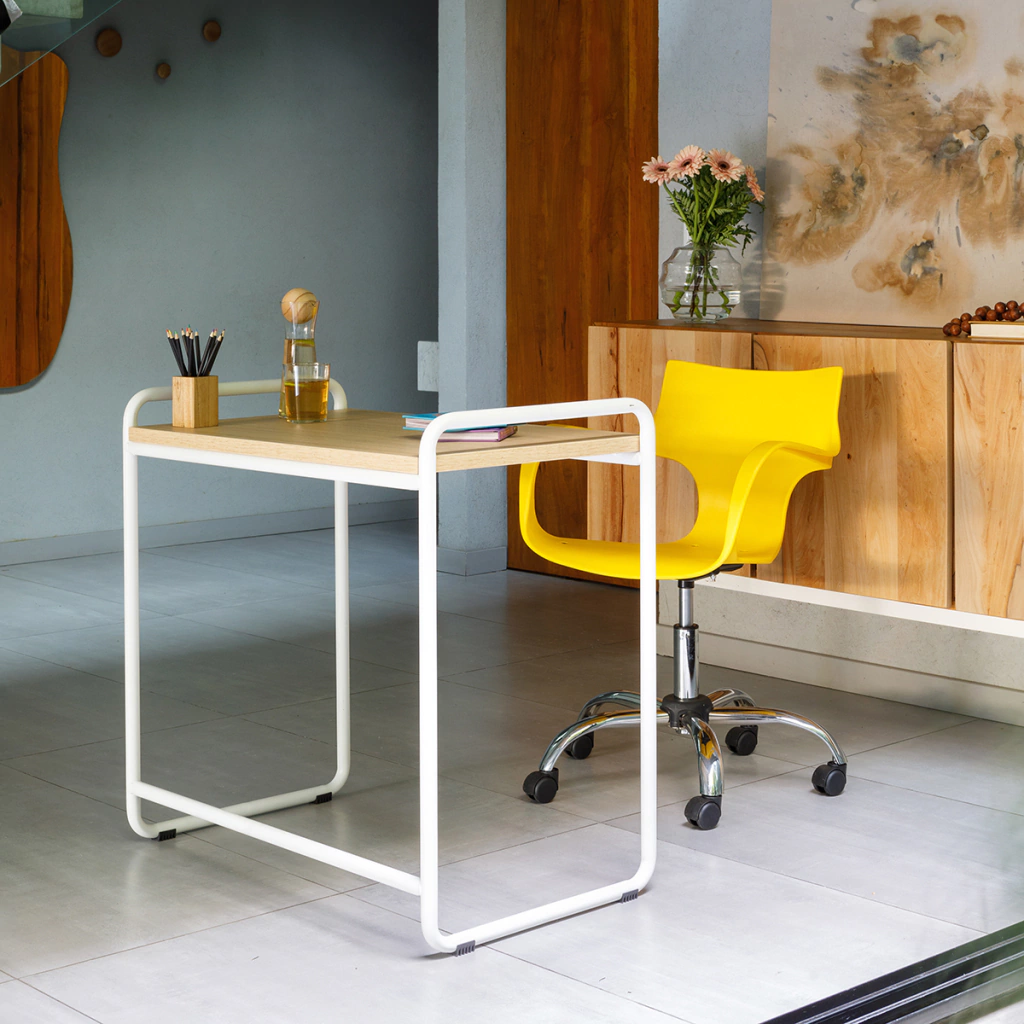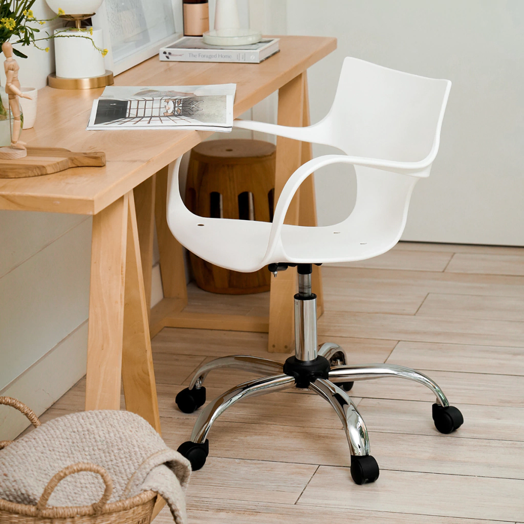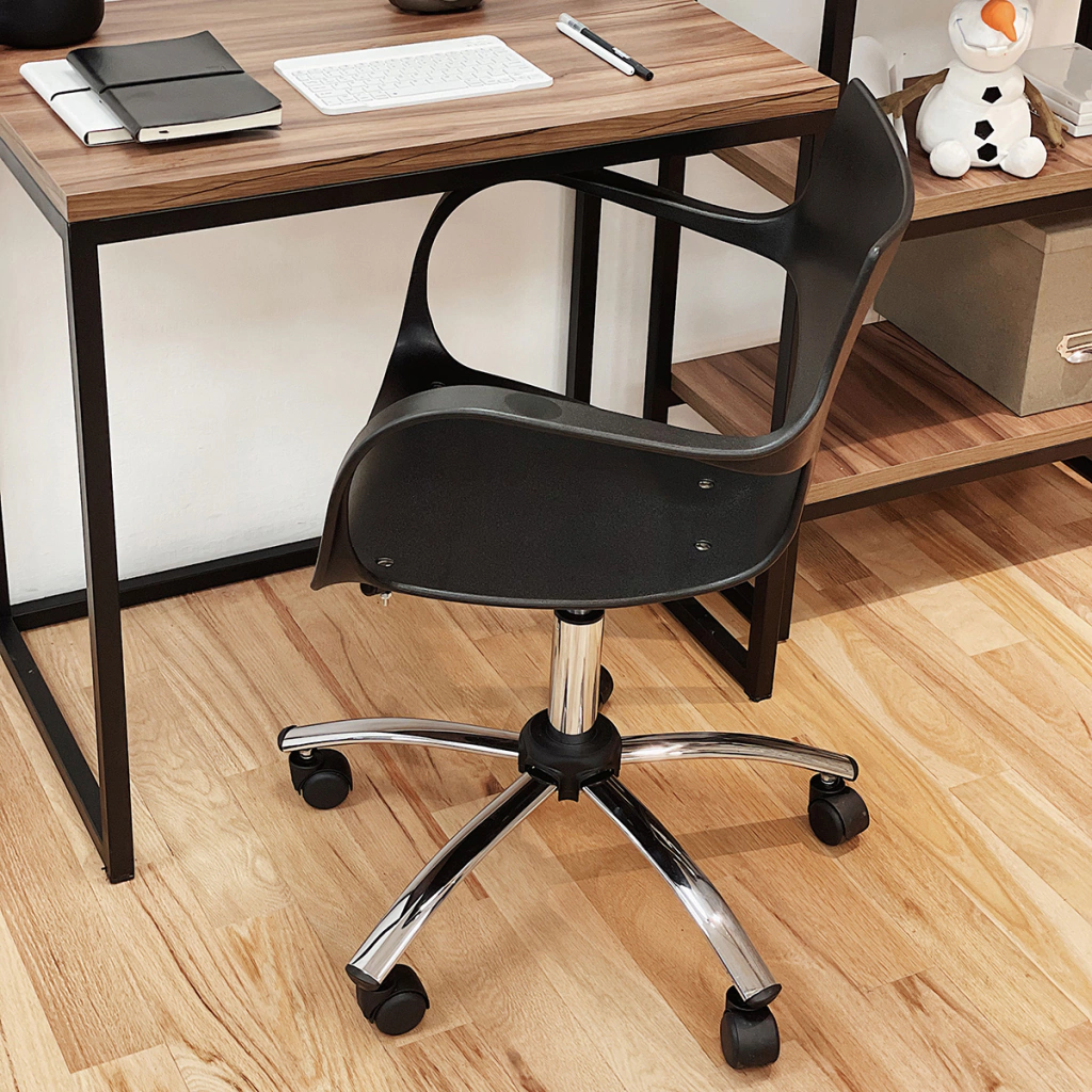Silla nuemática, regulable en altura, con asiento realizado en un monocasco de polipropileno de alto impacto, disponible en varios colores.