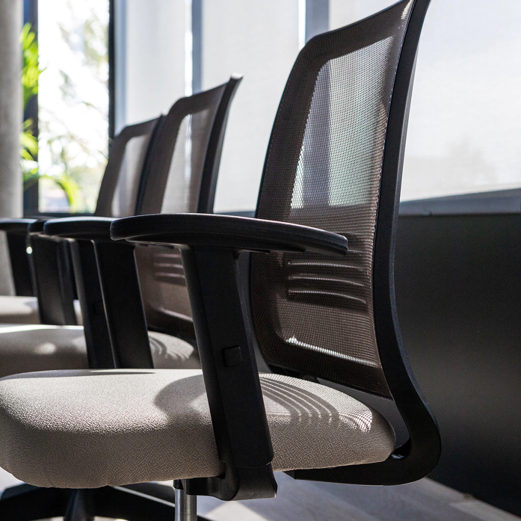 - Asiento en espuma inyectada tapizado en tela marathon de alto tránsito de excelente calidad.