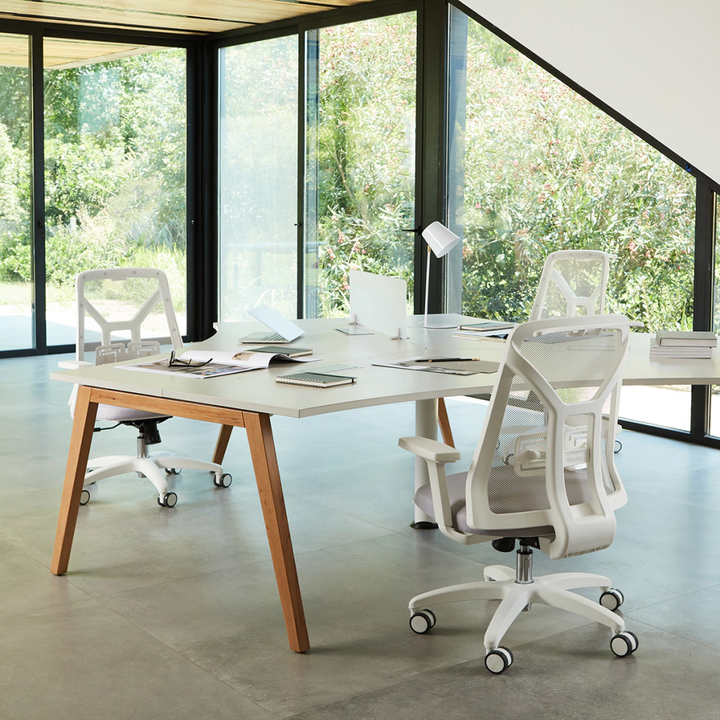 - Mecanismo A-SYNCHRON: respaldo oscilante con posiciones de ajuste y control de tensión en el asiento. Permite fijar el respaldo en la posición de mayor comodidad.