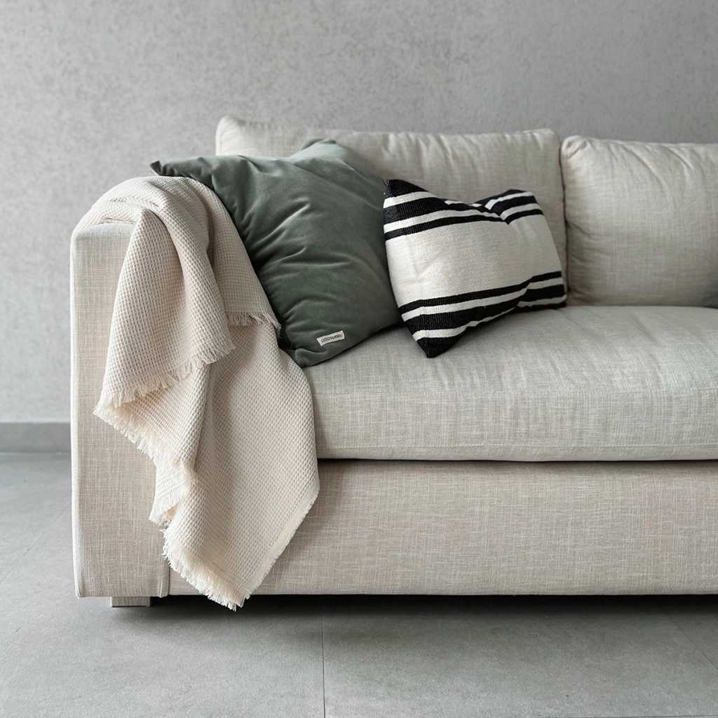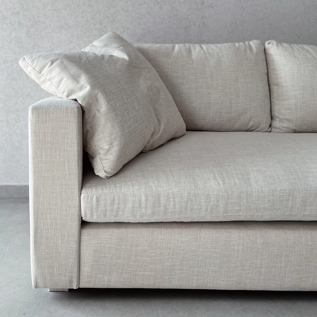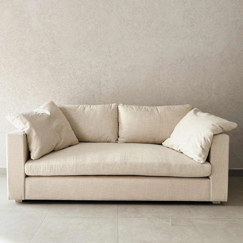 De apoyabrazos rectos y amplios, y gran altura de sus almohadones de respaldo definen el carácter y comodidad de este sofá.