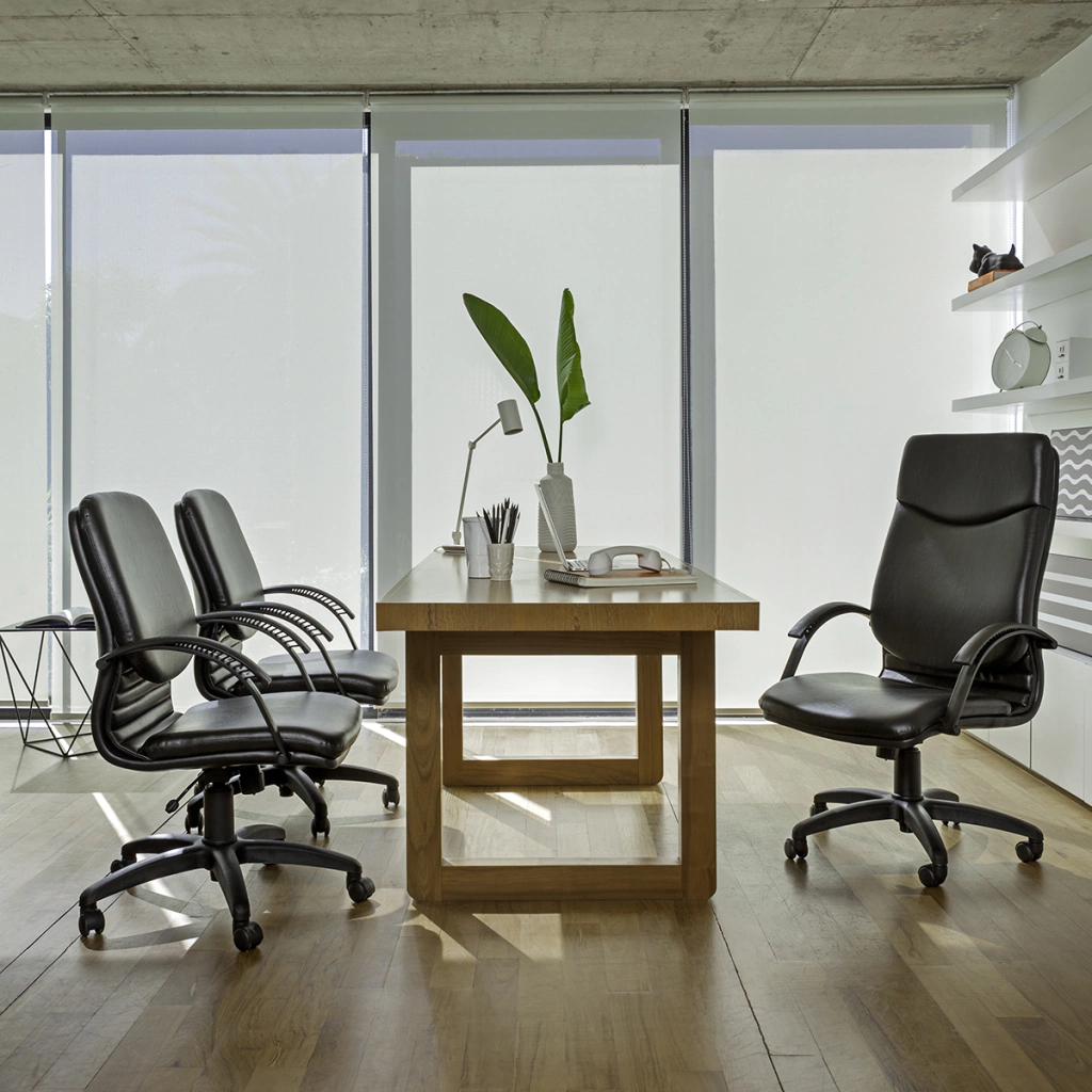 Viene en su versión de respaldo alto y de respaldo bajo.