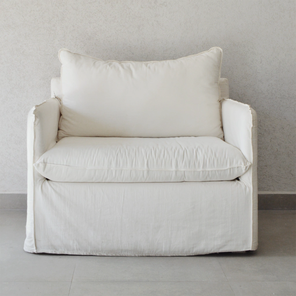 Los sillones con funda son un MUST para los livings familiares. Nuestra versión del clásico modelo Ghost viene con la estructura tapizada en lienzo natural y una funda removible en tussor. La podés lavar cuantas veces necesites.