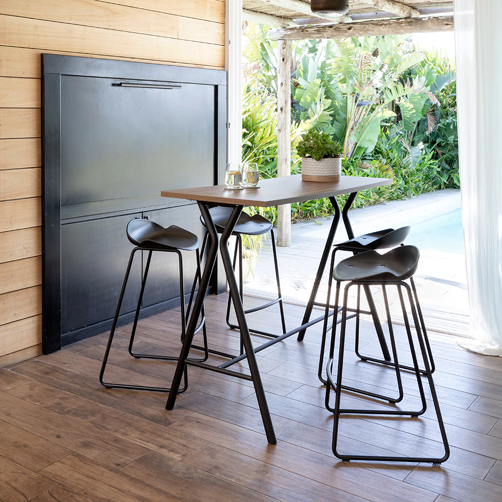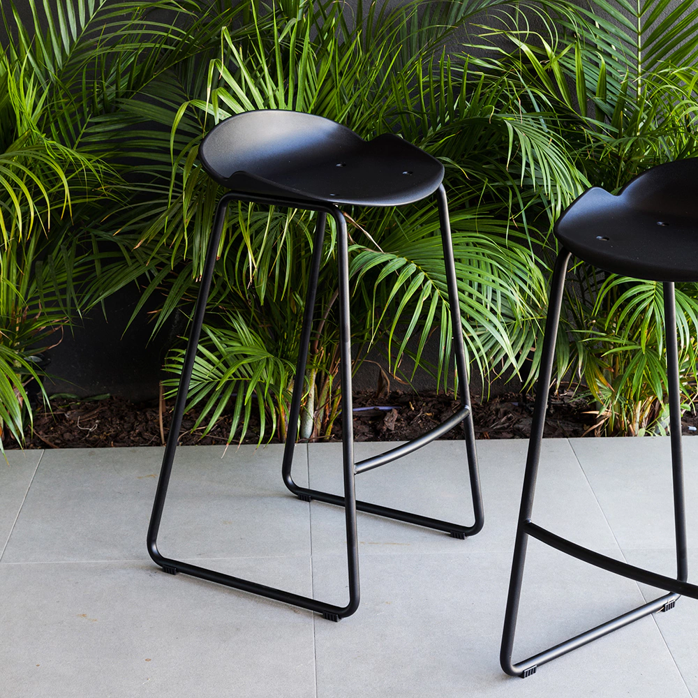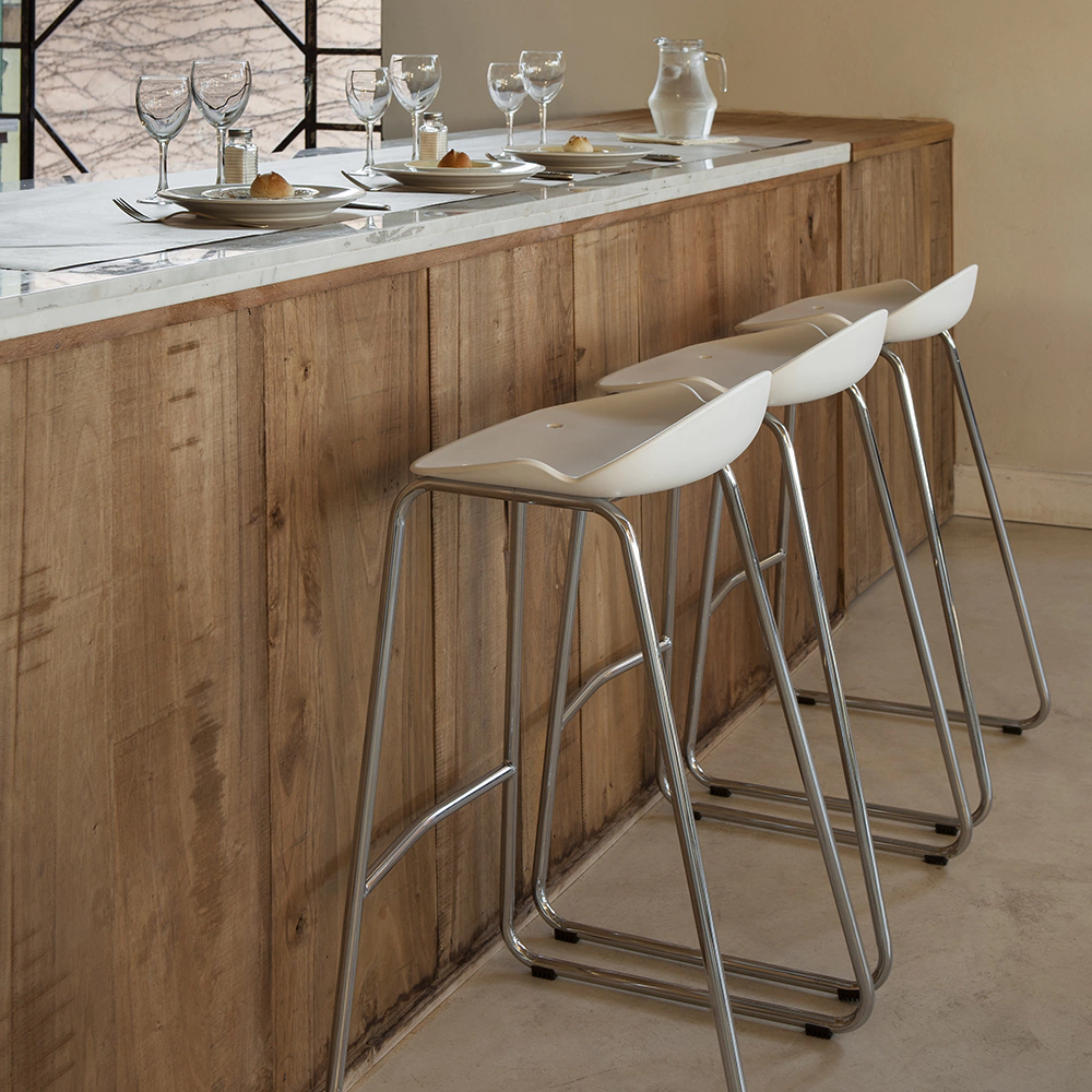 Cómodo y canchero taburete sin respaldo con base trineo.