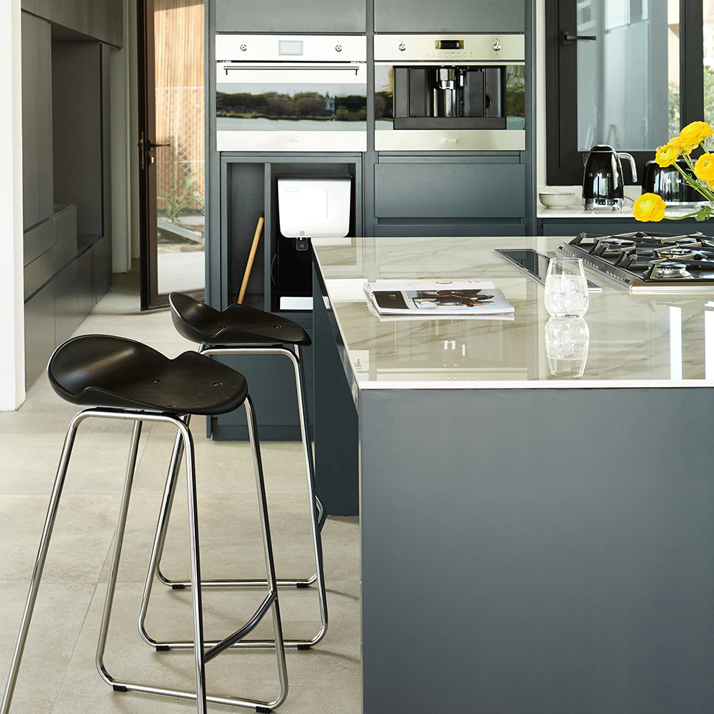 Las patas las podés pedir en blanco, negro, gris o cromado.