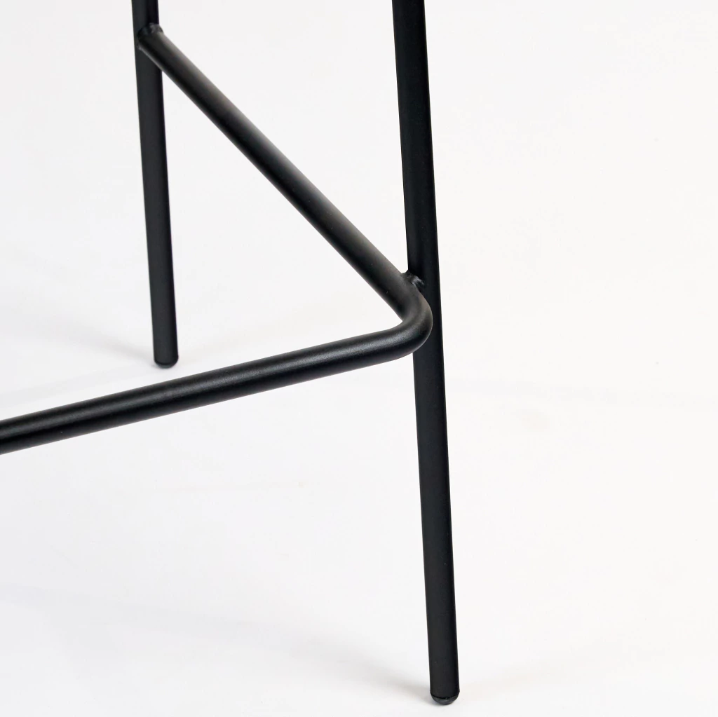 Taburete de diseño con asiento y respaldo tapizado, y estructura en caño.