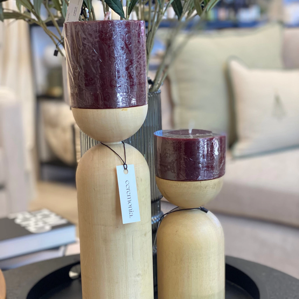 Velón Borravino, un velón de cera aromática de color Borravino que aporta calidez y estilo a tus espacios. Su delicada fragancia a frambuesa crea un ambiente fresco, ideal para candelabros o como detalle decorativo en mesas y recibidores.